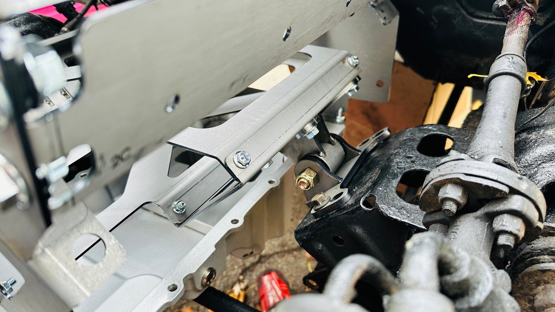 - Mounts the engine as low and far back as possible, 1/2” from firewall and 1/2” from steering bar.